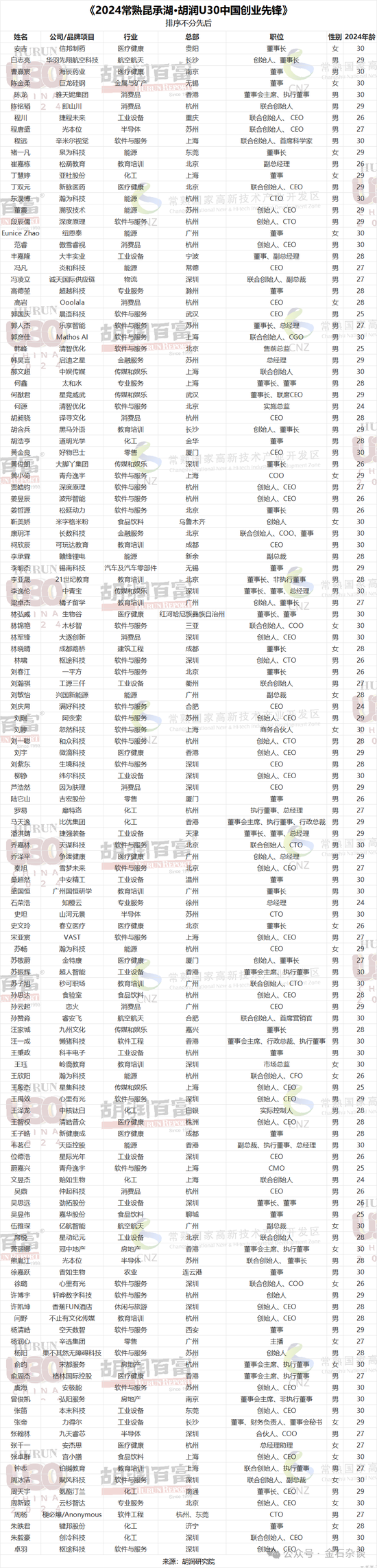 近日,最近笔者关注到一件事,在今年胡润百富发布的U30中国创业先锋榜单中。